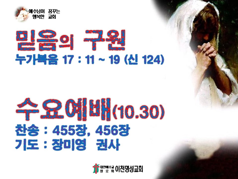| 다음글 | 용서의 삶 (2024. 10. 23) - 기도 홍혜숙 권사 | 운영자 | 2024.10.20 | 0 | 104 |