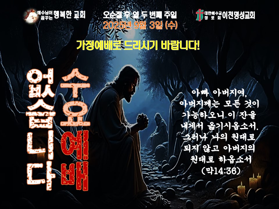 이번 주 수요예배는 가정예배로 드리시기 바랍니다.