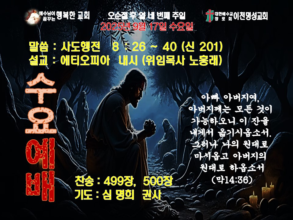 다음글 | 천사의 얼굴 (2025. 09. 10) - 기도 권원숙 집사 | 운영자 | 2025.09.07 | 1 | 13 |