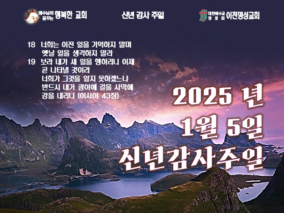 이번 주(01.05)는 신년 감사 주일로 지킵니다.