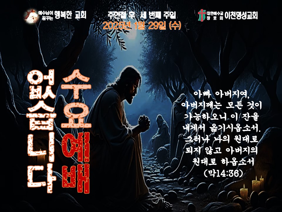 | 다음글 | 2025년 01월 26일 - 주현절 후 세 번째 주일 | 운영자 | 2025.01.26 | 0 | 87 |