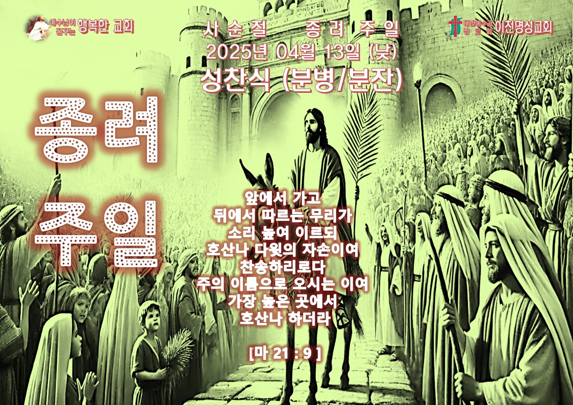 내일(04. 13)은 고난(종려)주일이며 성찬식이 있습니다.