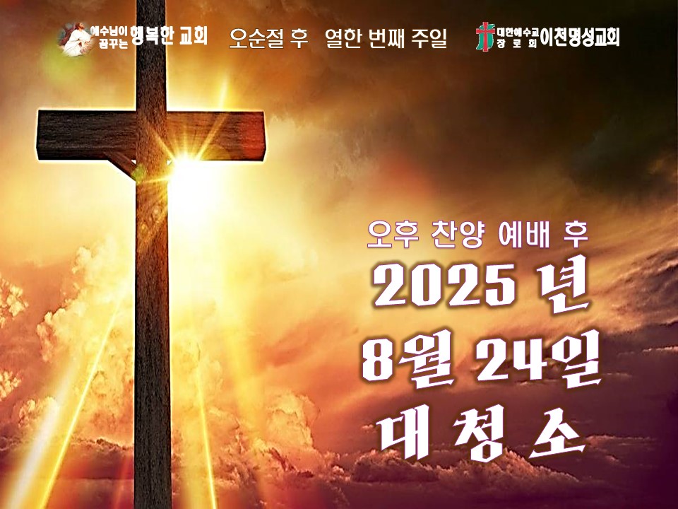 다음글 | 내일(08. 20)은 수요예배로 모입니다. - 기도 서희윤 집사 | 운영자 | 2025.08.19 | 1 | 19 |