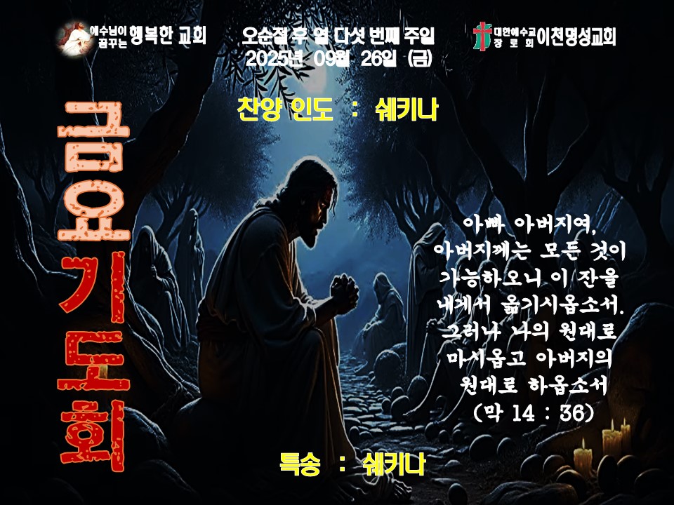 다음글 | 내일(09. 24)은 수요예배로 모입니다. - 기도 서영선 권사 | 운영자 | 2025.09.23 | 1 | 9 |