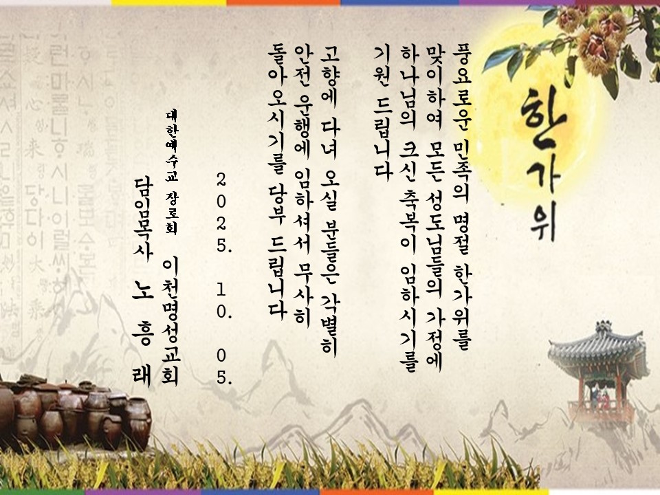 은혜가 풍성한 한가위 되시기 소망합니다.