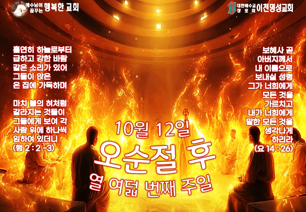 내일(10. 12)은 오순절 후 열 여덟 번째 주일로 지킵니다.